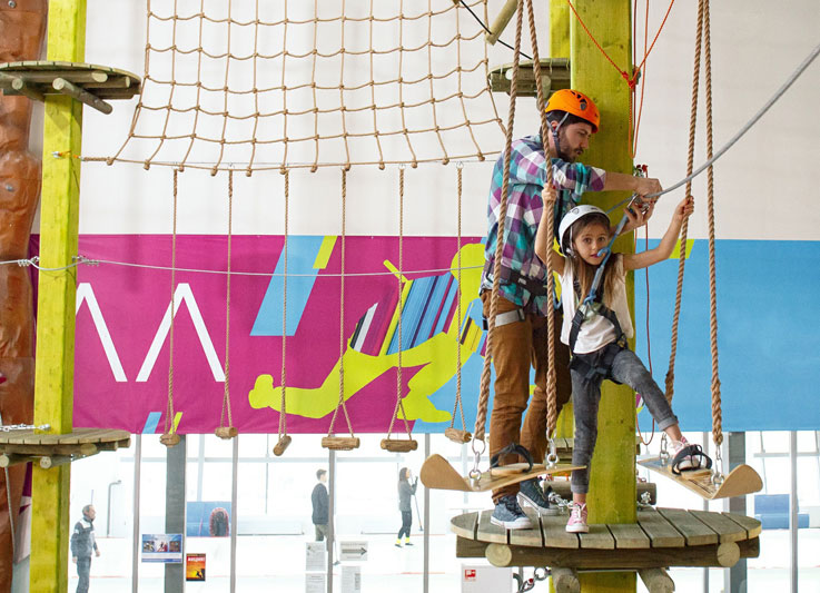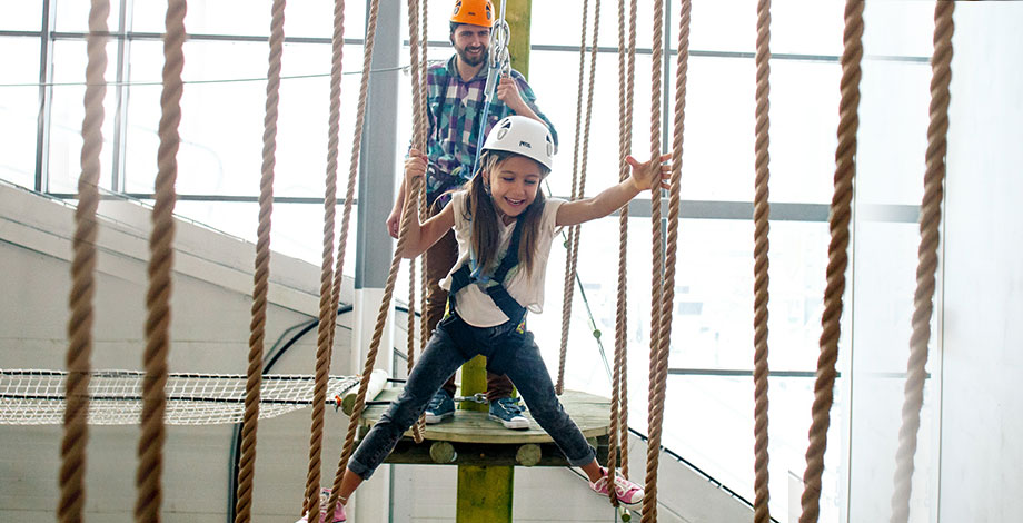 Проводите время в веревочном парке всей семьей. Вас ждут 4 трассы различной степени сложности на высоте от 1 до 10 метров. С вашей помощью ребенку будет проще и интереснее проходить наши задания.